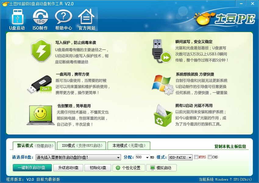 土豆WinPEu盘启动盘制作工具 2.0