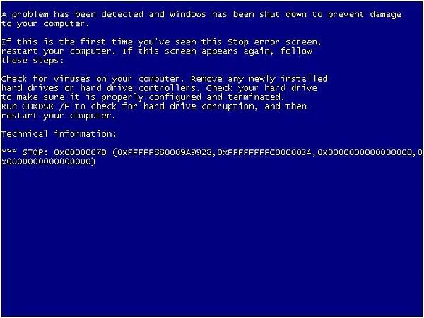 蓝屏代码0x0000007B错误:表示Windows在启动的过程中无法访问系统分区或启动卷。