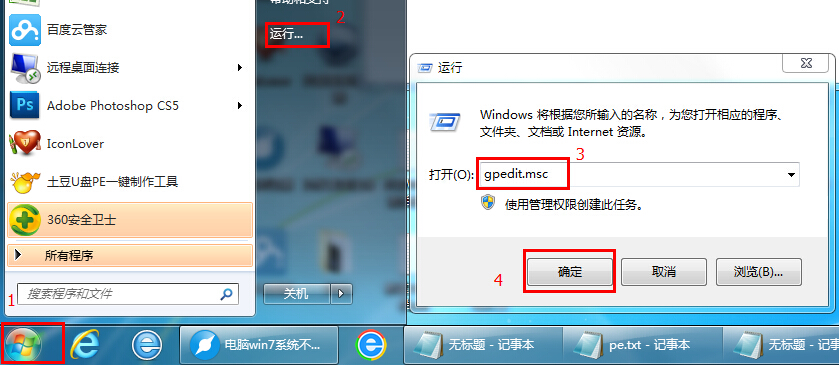 1、点击桌面左下角开始-运行-输入“gpedit.msc”--“确定”。