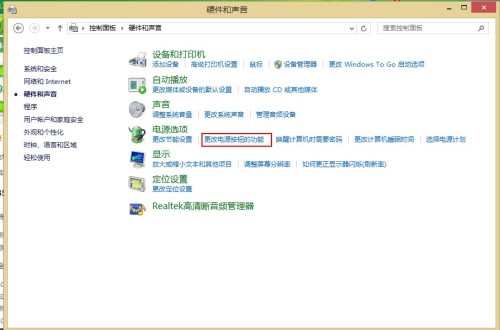 2. 在控制面板菜单中单击“电源选项”下单击“更改电源按钮的功能”。