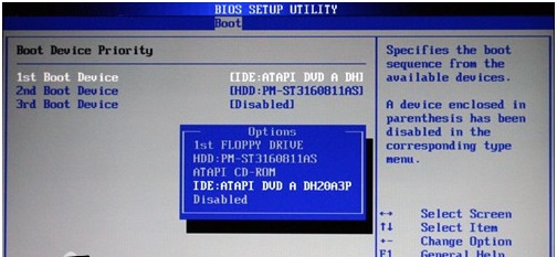 进入后如下图所示,选择1st boot device,按回车,在弹出的选中,选你的U盘启动盘(注意开机前U盘要接在USB接口)