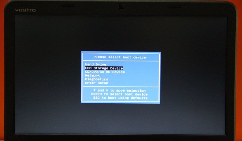 第四步:硬盘修改后就开始要设置u盘启动。重新开机,当出现第一步的画面是,不停的点击F12键就出现下面的界面。然后用键盘上下键选择USB Storage Device,选择好后按F10键保存。如下图: