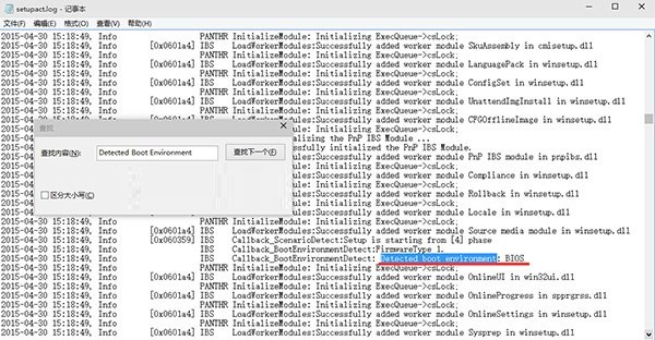 安装操作系统时,安装程序会收集一些必备信息,电脑的启动方式就是其中之一。在你的电脑C:\Windows\Panther文件夹中找到setupact.log文件,用记事本打开,然后搜索Detected Boot Environment,在这里你就可以看到系统启动方式了。如下图:
