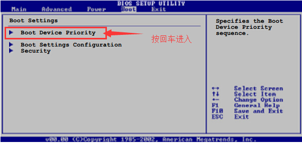 然后进入BOOT,选择Boot Device Priority并按回车进入,如下图