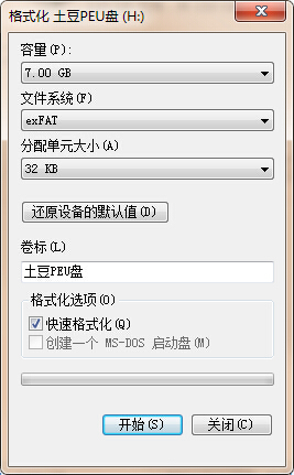 3、选择好U盘格式后,选择分配单元大小,设置为64KB,取消掉快速格式化的勾,然后点击“开始”按钮,格式化u盘启动,如下图所示: