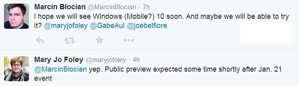“Windows Mobile 10(WP10)公共预览版会在21号的发布会之后很快与大家见面。”
