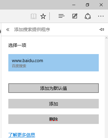 选中“www.baidu.com 百度搜索”,下面选择“添加为默认值”。