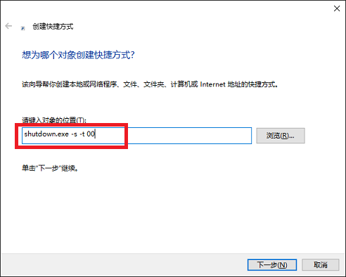 右键桌面空白处,选择“新建 --快捷方式”,输入关机命令:shutdown.exe -s -t 00
