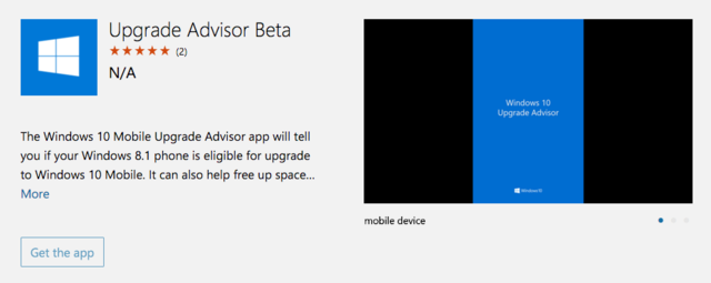Win10 Mobile升级助手上架却不开放下载 日前一款名为Upgrade Advisor的Windows 10 Mobile升级助手应用就已经上架微软官方应用商店。虽然该应用目前仍为Beta版而且并不支持开放下载,但这至少是...