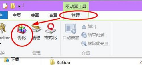 win10系统碎片整理和磁盘优化 进入win10系统桌面后,双击打开这台电脑/此电脑,再双击打开要整理或优化的某个盘符,点击上面菜单中的管理,再点击优化。如下图: 然后就会打开优化...